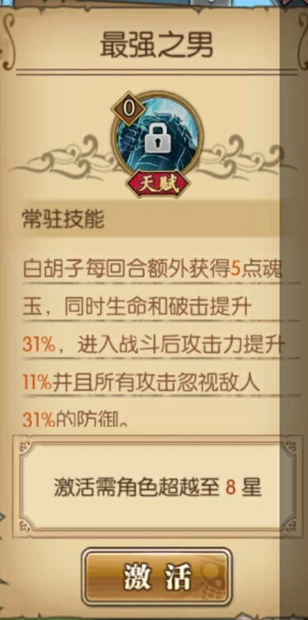 白胡子的8星天赋也是白胡子的核心天赋每回合额外获得5魂玉可以每回合用奥义增加最大生命破击攻击和无视防御比雷利的8星天赋更稳定