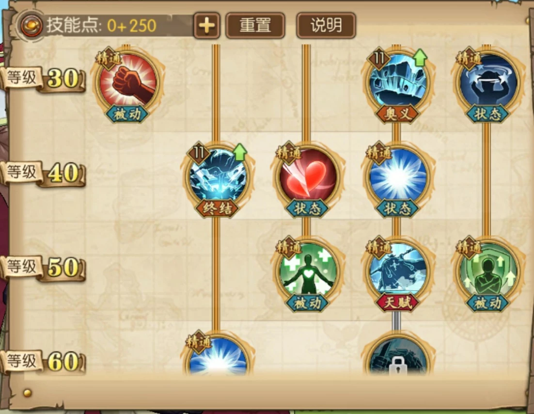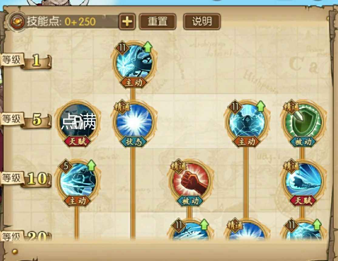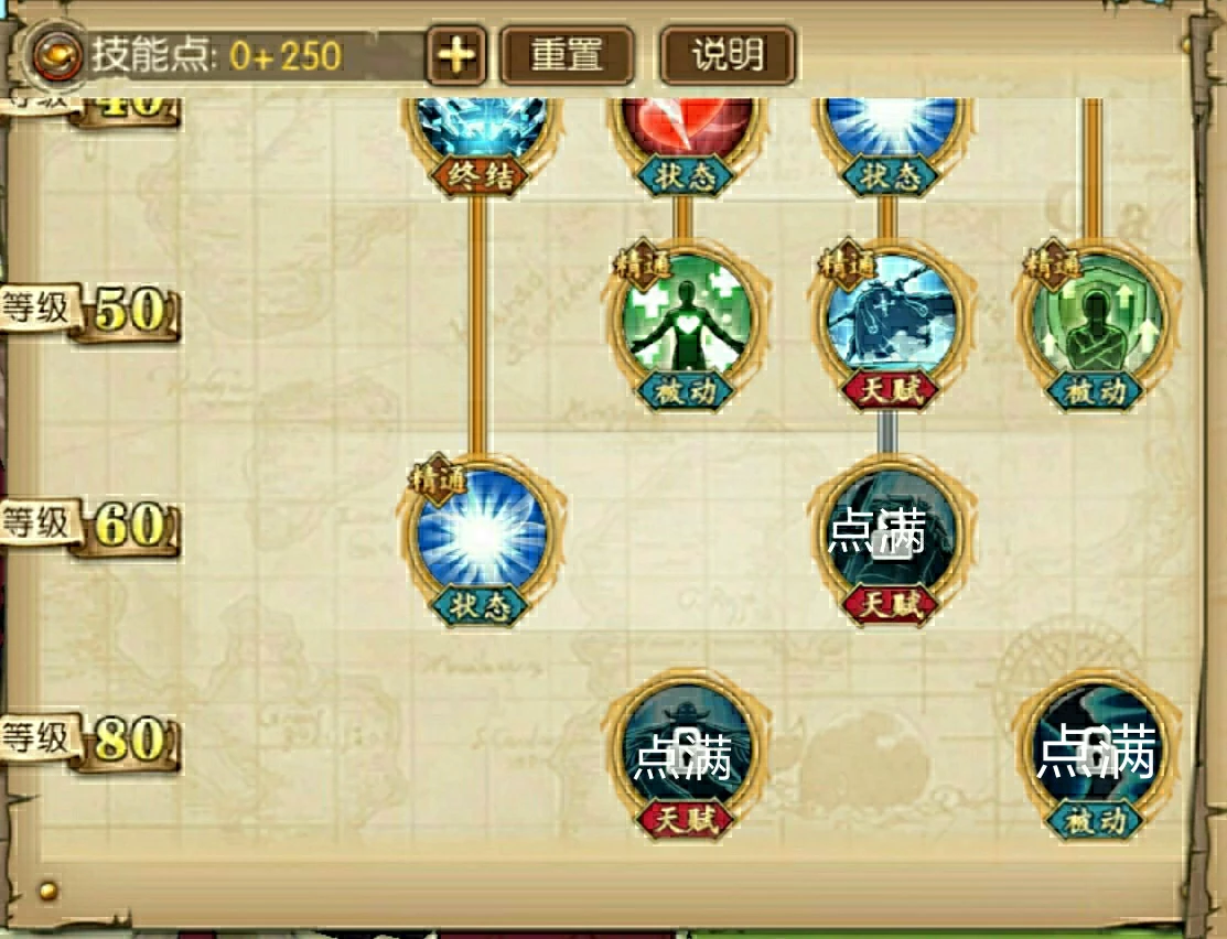 好了,从上面的白胡子的天赋与技能的状态上分析,基本可以了解白胡子是怎么样的人物,那么我们怎么加点呢,现在我们看看我是怎么加点