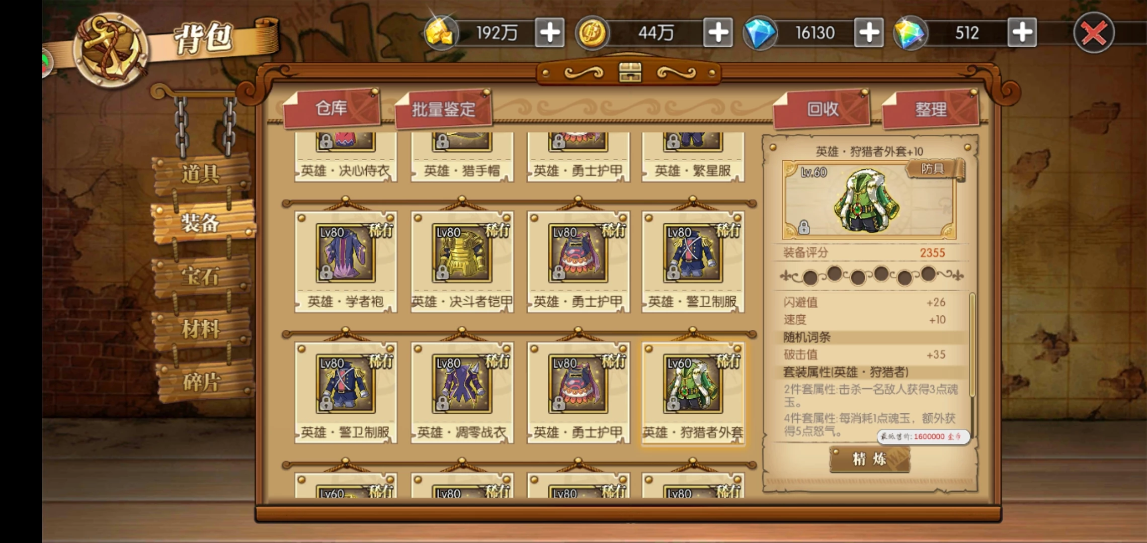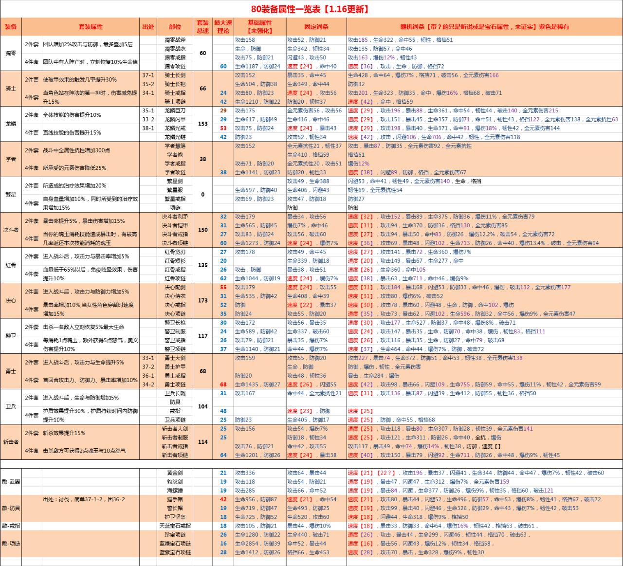 80装备推荐:速度散装备,半套勇士或龙鳞,或半套红骨