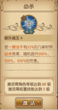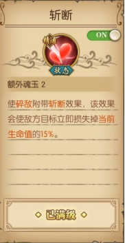 5魂的技能附带斩断这个没什么说的5魂的技能也有什么特殊的地方最好用的是10魂终结技加成350%的物理攻击还附带必杀效果相比于天龙效果必杀100%触发运气好能提升500%的伤害比斩杀还好用