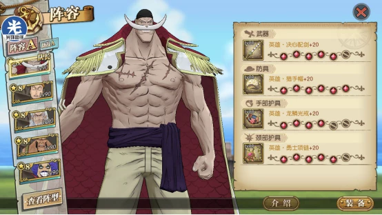 提高可玩性白胡子队的人物小马哥、艾斯、乔治等人物上阵了,也提高的白胡子的硬度,生存能力更高了