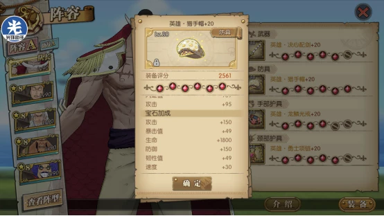 白胡子的伤害本身就很高了,宝石更加推荐与防御型为主,主攻击力就好了,终极培养血量能有6万多的,速度都能上580多,人物尽量走速度是最好的打法。