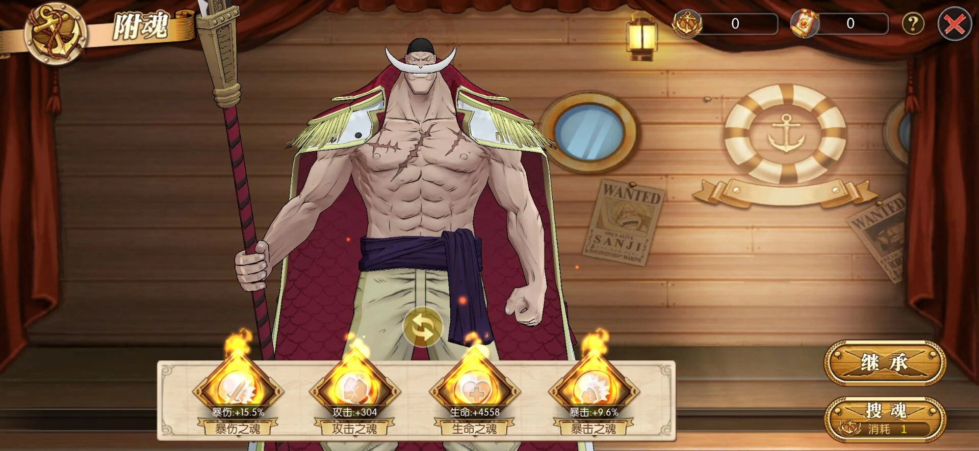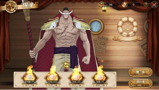 白胡子附魂:推荐:生命+攻击力+速度+命中