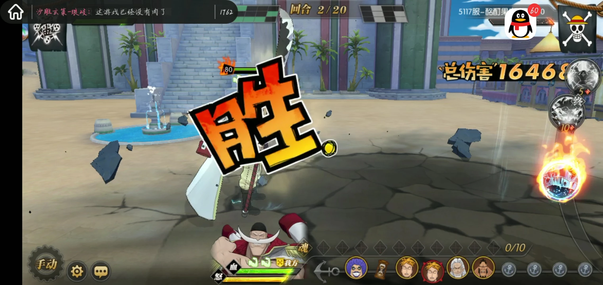 同样海震还有个极强的被动,减敌方命中都是小事,最主要的是几大概率提高白胡子中断敌人出手概率,如果你是欧皇敌人都要在白胡子面前乖乖撤退,白胡子作为极限输出不够肉,但是王者霸气不是肉可以比拟的