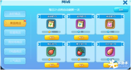 4.商店购买【速速肥】+【樱子果】, 前往果园派遣主要培养的精灵种植【樱子果】