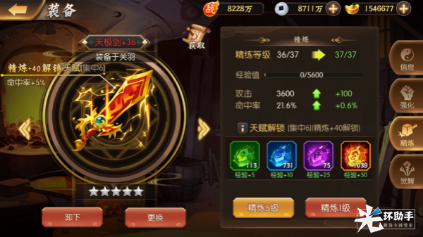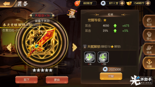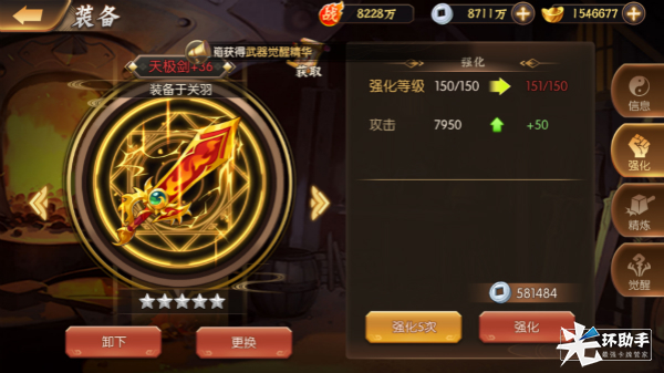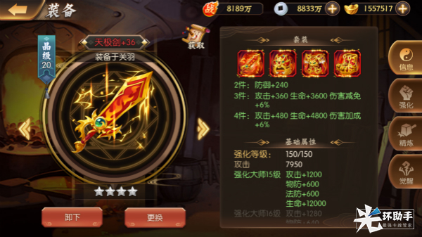 而装备可以通过强化,精炼,觉醒来提高增加的属性,为装备者提供更多的战力加成;