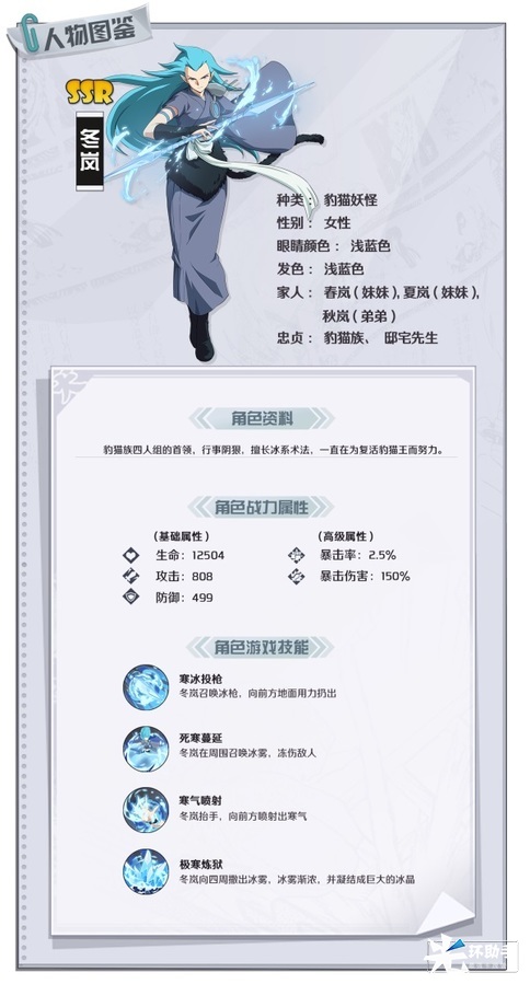 我是冬岚,豹猫四人组的大姐,能自由运用这自然中的寒气,只要我出手,让一湖池水立马凝固成冰也不在话下
