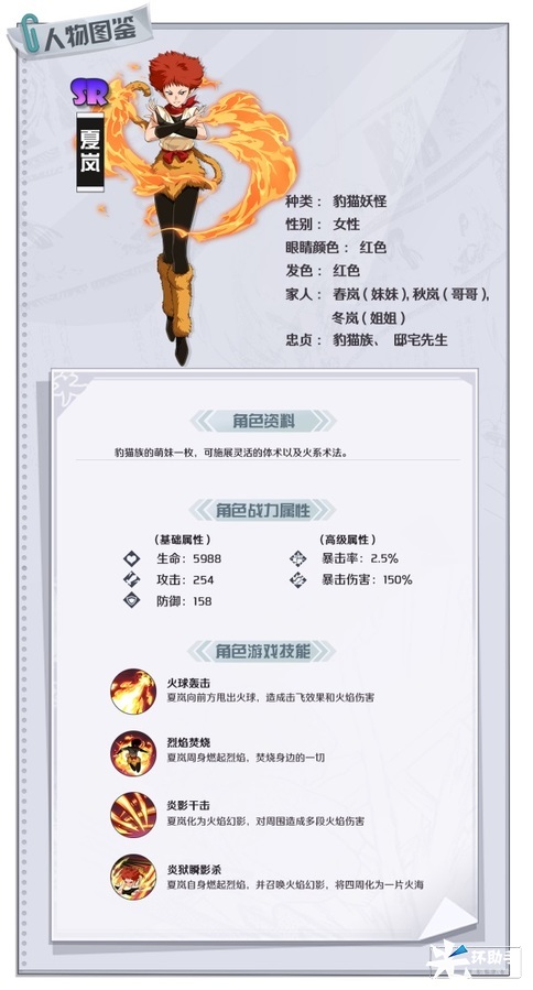 夏岚与我相反,她极擅长用火,且性格极其火爆,要是不小心惹火了她,就请做好被她召唤火焰焚烧一切的准备吧!