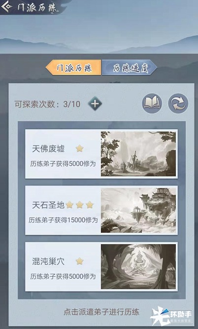 作为掌门,我们可以招募弟子,不同的弟子有不同的天赋,如同下界一般,我们可以为弟子传功,训话,发放俸禄,馈赠,解答疑惑等等,非常丰富有了弟子之后,在弟子修炼到一定程度的境界,可以进行门派历练,给自己获取更多的资源星级越高的地方对弟子的境界要求也越高,图中三星地址需要洞虚期的弟子,还需要道友培养一段时间才可