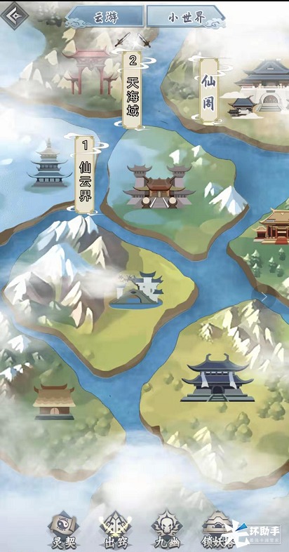 云游界面这里分为云游与小世界,云游主要以自身能力进行战斗,小世界主要以仙仆的能力进行战斗。