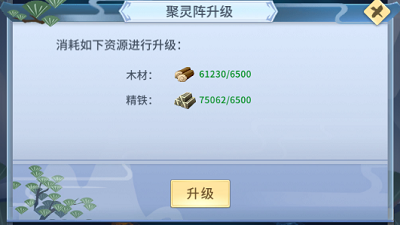 聚灵阵源源不断的为仙友提升灵气以便于仙途上的消耗,通过消耗木材、精铁来升级聚灵阵的等级可以增加聚灵阵生成灵气的速度和储存灵力的上限,灵气储存达到上限后聚灵阵就不会再继续生成灵气咯!所以各位仙友要记得及时“收菜”噢~
