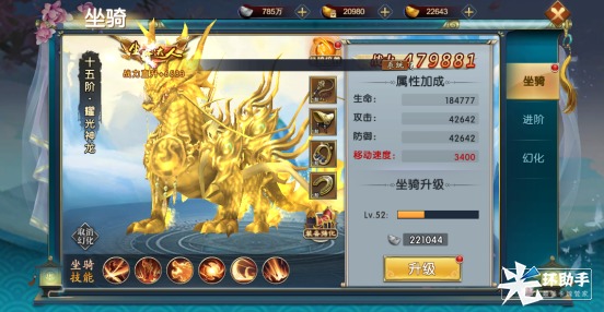 4. 坐骑升阶使用银两进行升级,升级成功直接加战斗力。