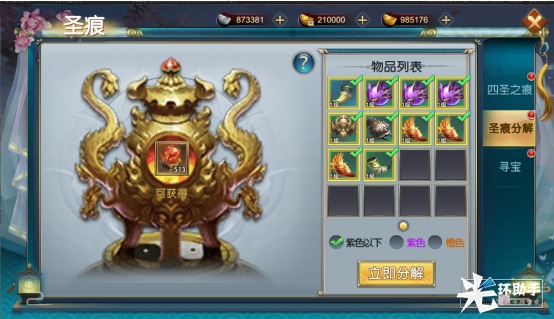 3.多余的圣痕材料可通过分解功能进行分解,分解后可获得圣痕之魂的材料。