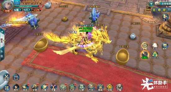 觉得游戏和元宝输出低?这里有个金银秘库等你来,完成主线任务58级,即可参加金银秘库,每日的14:00,22:30开启,每场20分钟,20分钟的时间内地图上的金银和元宝随处可见,只要点击采集即可收入禳中,还有比捡钱更爽的事情吗!!!