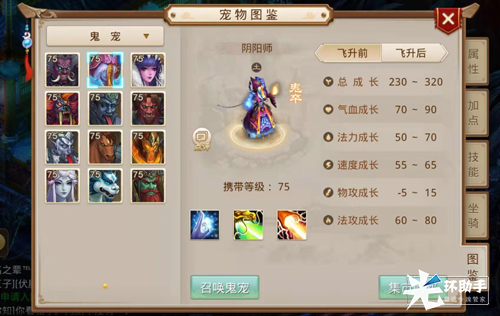 1.鬼宠资质不同增加属性数值不同(鬼仙>鬼将>鬼卒)