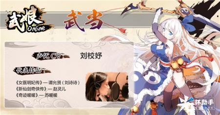 刘校妤,此次在《武娘》游戏中为武当、北冥、全真配音。曾为《仙剑奇侠传四》韩菱纱、《仙剑奇侠传五前传》瑕、《古剑奇谭》巽芳、瑾娘、姜离等多部游戏配音。其音色清脆、纯洁、高雅,咬字清晰,塑造《陆贞传奇》陆贞、《美人无泪》海兰珠、《回家的诱惑》等多部经典形象。