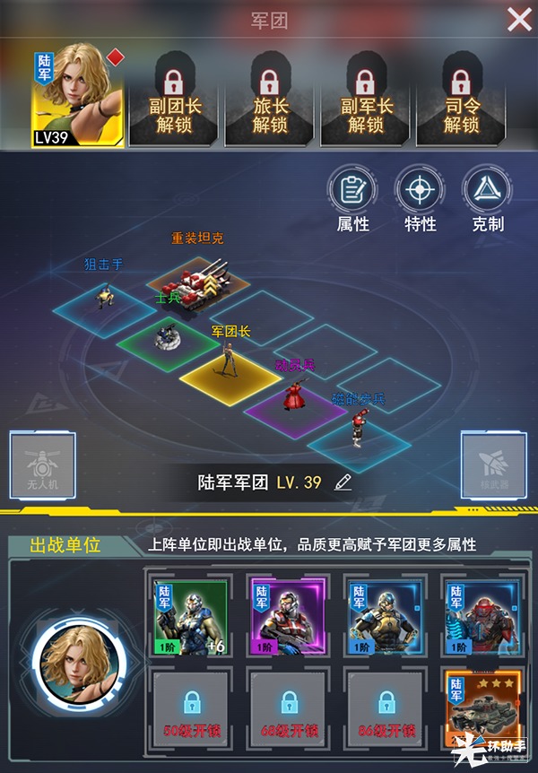 军团科技:科技的升级十分关键,有了高科技技能,才能增强军团在战斗中的输出能力。科技不仅可以为士兵带来技能,同时也会提升所有出战单位的属性。