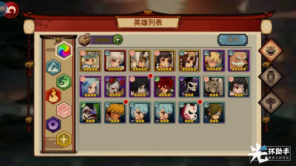 《百鬼物语》的背景设置在战国时代,英雄共分为6种属性,分别是火,地,水,风,光,暗,其中光与暗是稀有属性,英雄强力而稀有。火,地,水,风四种属性互相克制,而光与暗则单独克制。当相同属性的英雄同时上阵时,会随着上阵英雄数量的不同而触发不同的光环效果。所以我们可以根据自己的英雄自身属性进行搭配,玩法套路也是非常的丰富。