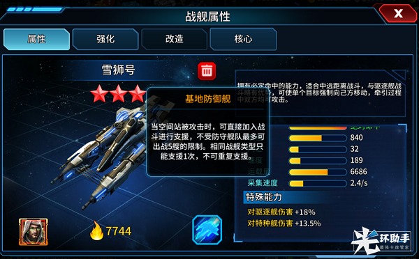 第一:雪狮号是一艘带有特殊性的战舰,在空间站防御时可以直接加入战斗,不收5艘战舰限制,同时拥有一个很强大的技能,就是将对方的战舰拉到自己编队的攻击范围内,同时给牵制的战舰无法动攻击,正常只要给牵制到基本战舰就废了(防御,追逐战必备战舰);其典藏号多出一个特殊功能:对激光抗性+20.7%,基本属性增加20%;