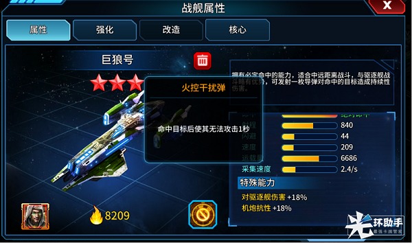 第二;巨狼号,是一个带有BUFF的战舰,命中率:绝对命中。持续伤害;射程远,800码;同时可攻击目标3个,这个就像一个放毒的战舰,只要技能丢出,马上跑,放逐战的强大搭配。典藏版,增加对航母的伤害19.8%,基本属性增加13%。