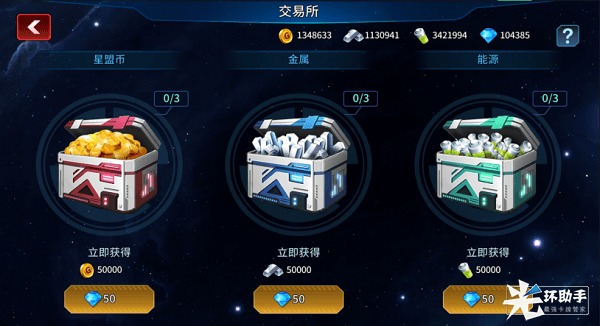 第四,行政大厅里面的交易市场每次需要花50水晶就可以购买5W的能源每天限购3次,加一次刷新,可能大家会想每天的水晶要那么多,后面还有一个这么获取水晶的一个说明,后期大家可以去看一下,这么获取水晶。