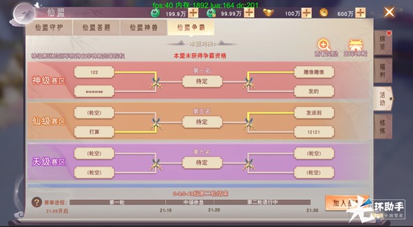 每次活动当天0点根据仙盟实力重新分配赛区,赛区越高奖励越好。