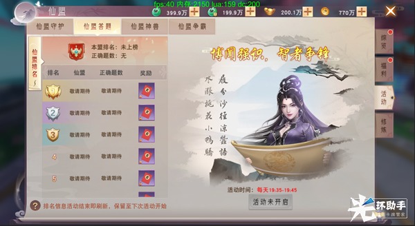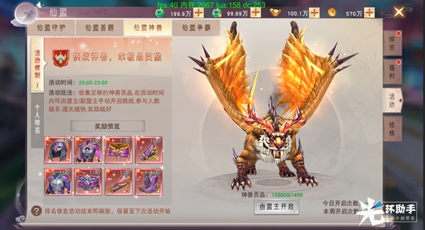 仙盟神兽每天20点~23点开启,只能由盟主/副本主开启。