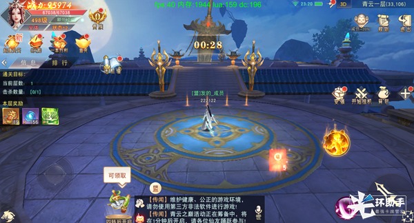 青云之巅一共9层,按照通关时间排名,排名奖励限时的活动酷炫称号。
