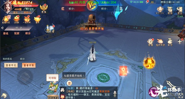 晚宴期间可同时进行仙盟传功,等级差较大双方传功效率更高。晚宴进行2分钟后,开始仙盟答题,积极参与可获得大量奖励。最快答题正确者可获得智多星礼包一份,其他人可获得参与奖一份。仙盟答题需要在场景内进行,在其他地图答题无效。排名第一的仙盟答题积分最多者在活动结束后可获得状元称号。晚宴活动中,每10秒获得一次大量经验奖励。