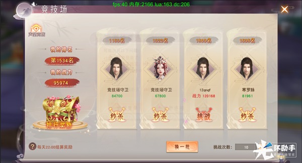 挑战成功,玩家排名与被挑战玩家互换,挑战失败排名不变,每场比赛更据胜负获得相应奖励。每天有10次竞技挑战机会,提升vip等级可购买额外的挑战次数。每天22:00结算排名,结算后可领取相应的排名奖励。