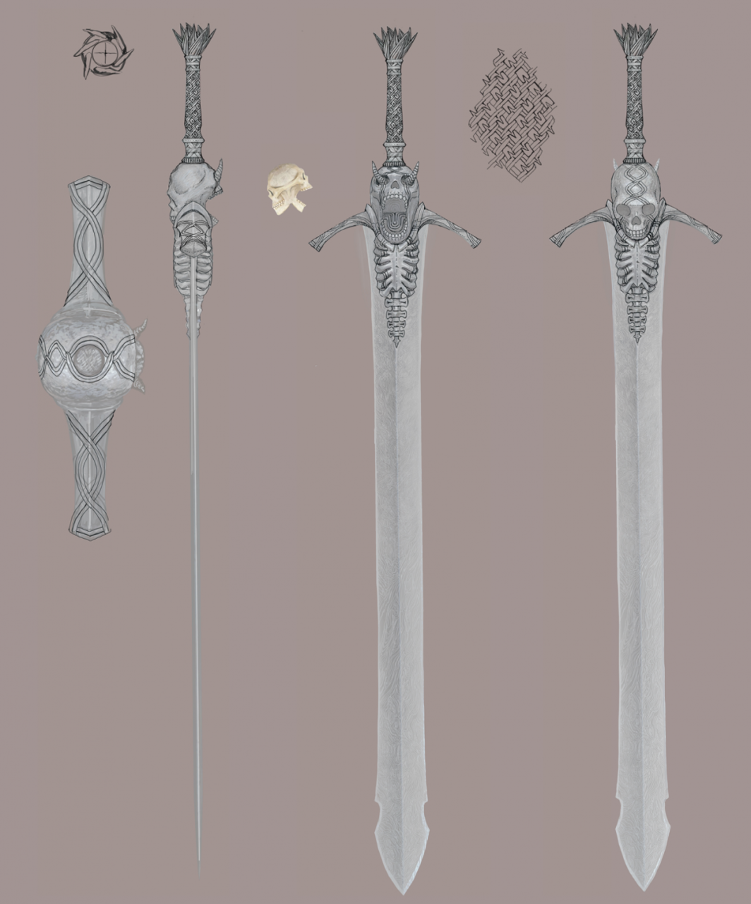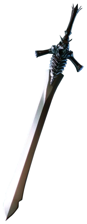 叛逆的剑身沉重,是一把巨大沉重的双刃剑,刀尖两侧都有缺口。它的剑柄部分处于休眠状态的剑柄端是一个尖刺,但在唤醒后会分裂成几个尖峰。握柄很平整,但防护罩是骨骼,每侧都有骷髅头设计,通向肋骨笼,叶片从中拔出;在叶片的一侧,头骨是无角人类的头骨,而另一侧则是有角恶魔的头骨。最初,交叉护板被折叠成靠着肋骨,但是但丁的血液唤醒了剑,交叉护板就会延伸,头骨变成尖叫的头骨。