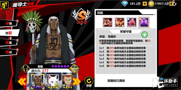 布莱恩不仅可以在释放必杀技时为团队带来贡献,当布莱恩受到致命攻击时也可以概率性为队友增加一回合的无敌效果。尽管在动漫中布莱恩感觉不符合六魔首领的实力,但是在游戏中我们还是希望尽量还原一个“沉默大佬”的风采,希望你们喜欢我们带来的通关第四章的礼物。