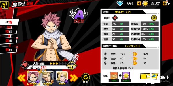 初始玩家只拥有纳兹一名角色,需要通关获取更多伙伴。跟随新手引导,通关1-1后玩家就可以获得露西的帮助。