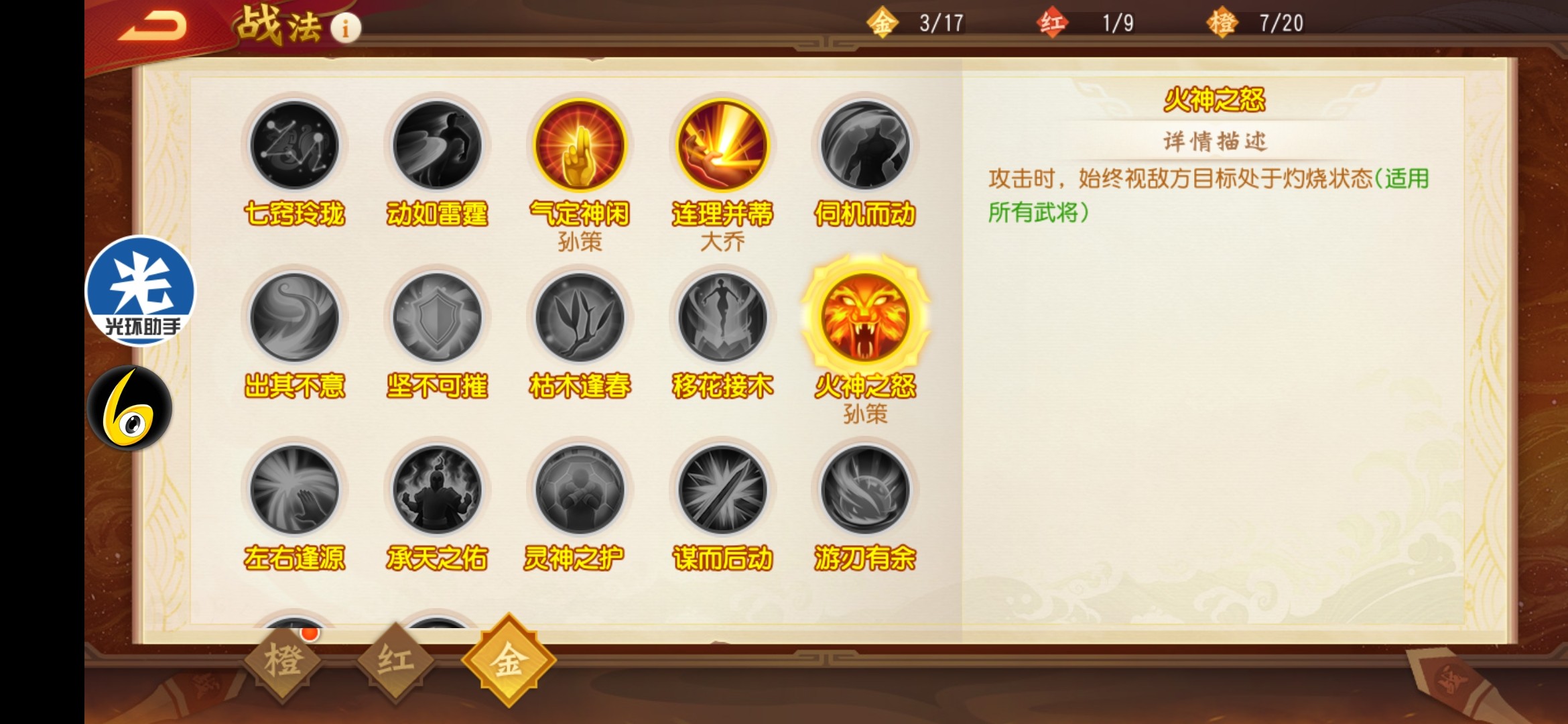 这个战法的作用是让吴国输出将不用经过点火将的点火就能发挥输出威力。可以让我们舍弃点火将(周瑜+陆逊+太史慈)+朱雀神兽+铁血红鬃这3大资源。