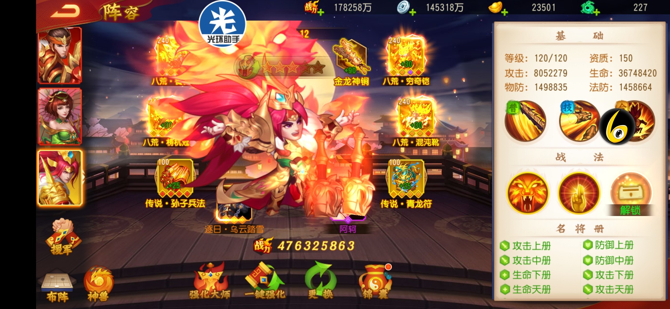 🔥然后开始激活主角+孙策+张飞+小乔+大乔这5个武将剩下的天册。需要王异。马云禄。董白。这3个金将就可以开满这5个武将的天册。马超的天册暂时放弃。由于有破釜沉舟+奔雷马。硬扛3回合没有问题。一个金将开马超一个天册有点浪费。以后如果开金战法有随便的再开马超天册。