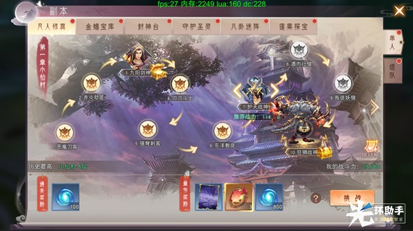 玩家等级达到一定等级后将开启凡人修真功能,凡人修真一共有30章,每一章有10层,每一层一只怪(个人层数的怪带有buff效果)