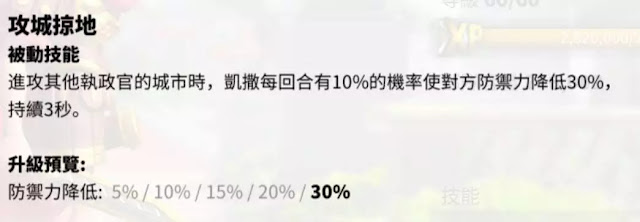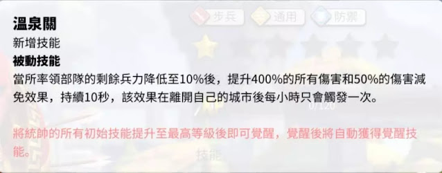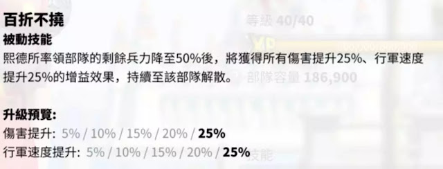 相对的,凡是剩余兵力XX%,中的% (百分比) 数值愈低,拥有此技能的统帅集结队是非常适合长期作战的。