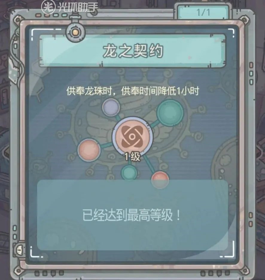 研究完成后,供奉龙珠时间降低1小时,相信对于各位来说,应该都明白供奉时间减少意味着什么吧,并且由于龙珠的特殊性,目前仅有龙之契约和龙珠雷达可以减少龙珠供奉时长,因此优先研究。
