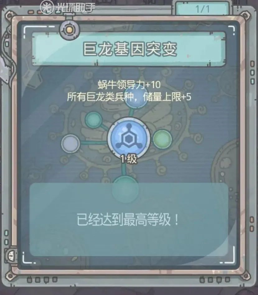 研究完成后蜗牛领导力增加,所有巨龙兵种储量上限增加, 八阶巨龙目前很少有人达到,但是对于兵种储量上限加成还是很大的,而领导力在目前是非常有用的。