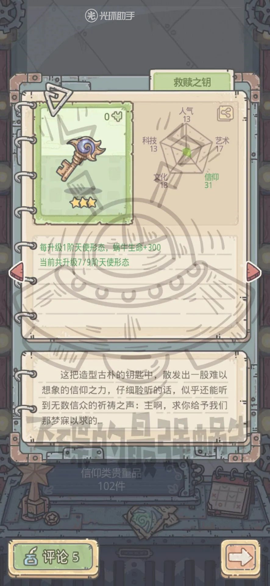 ③信仰强化,研究后增加蜗牛信仰、增加探索获得蘑菇宝箱