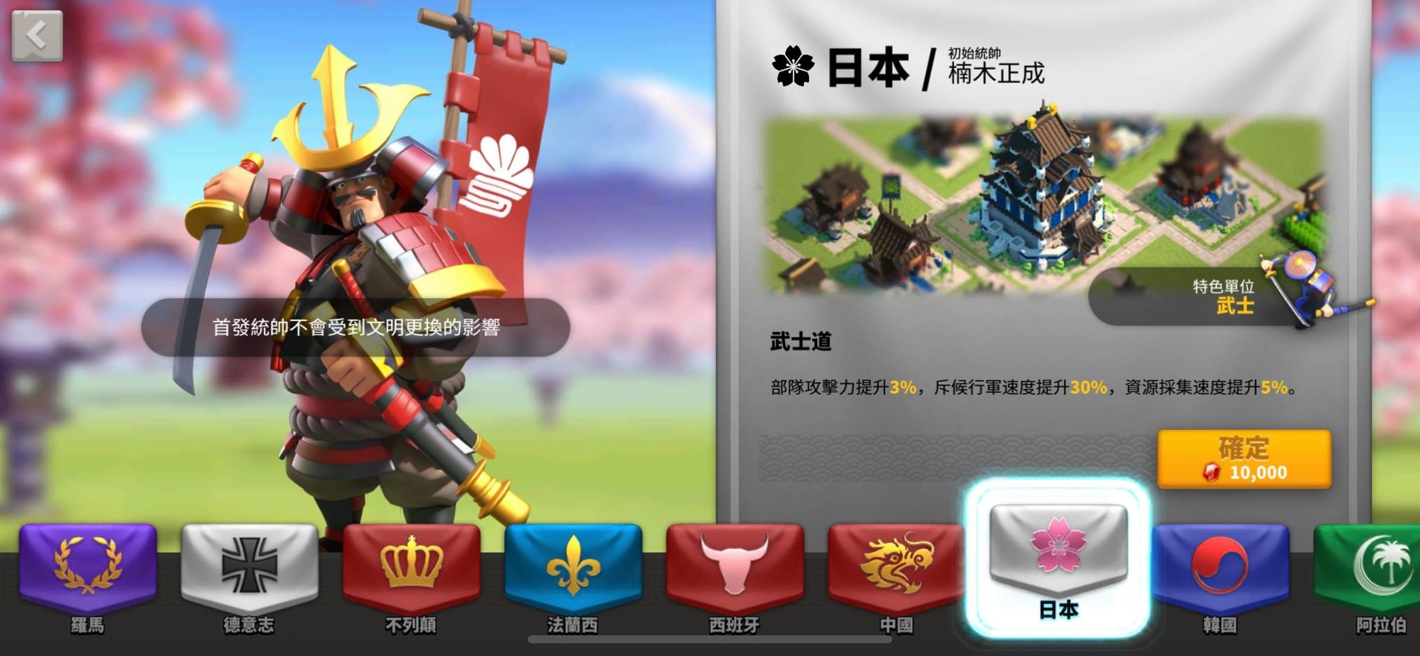 偏好防守跟弓兵的文明, 一样的, 这文明跟德意志一样有训练加速, 但是更注重要防守, 它的盟友援军自己城池+20%充分体现到, 打架会比较有用. 而且弓兵比骑兵更脆, 更注重输出,弓兵+5%攻击也相当有作用,他的特种弓兵是所有兵种中最高攻击的