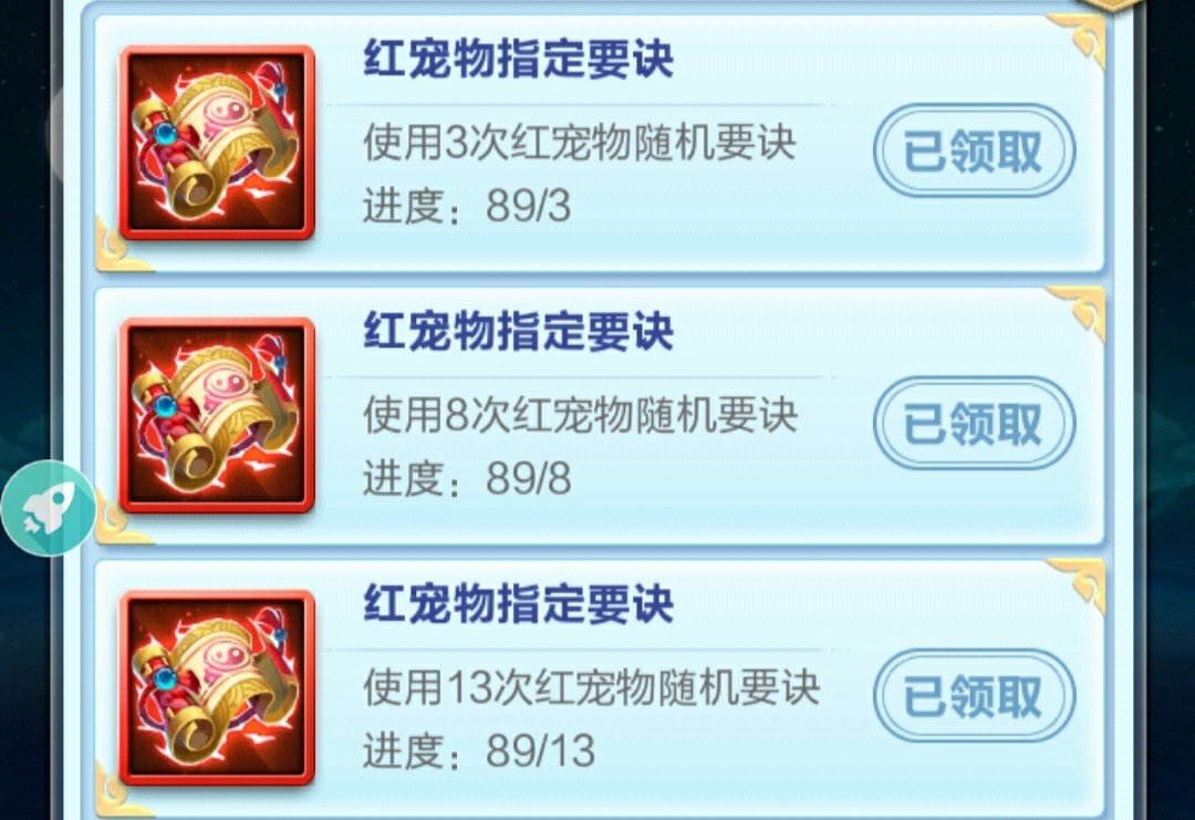 ◎指定要诀:这个来源不多,最珍惜的道具,且用且珍惜,一般用来领悟最后几个技能,使用红宠物要诀达到特定数目赠送。