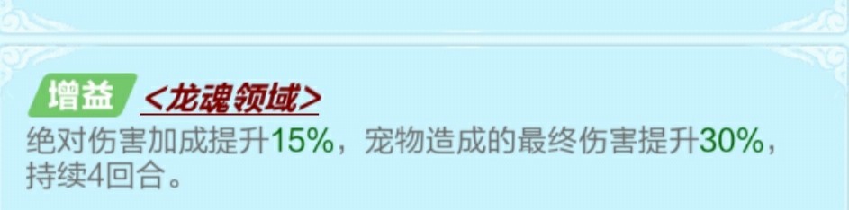PS:领悟小技巧:单个宠物所有技能当中不会出现相同属性(涵盖所有属性,比如你有了橙色伤害加成,那么在领悟这个宠物其他技能时候绝不可能再出伤害加成),按照这个思路,大家打书领悟时候,先不管那种没用的属性,比如命中闪避部分抗灭等等,这样你领悟其他位置技能时候不会出这几个无用技能,相当于间接提升极品属性概率了。(如果待领悟非红技能没有所谓的无用属性,大家可以先领悟出来几个,很容易出的)。