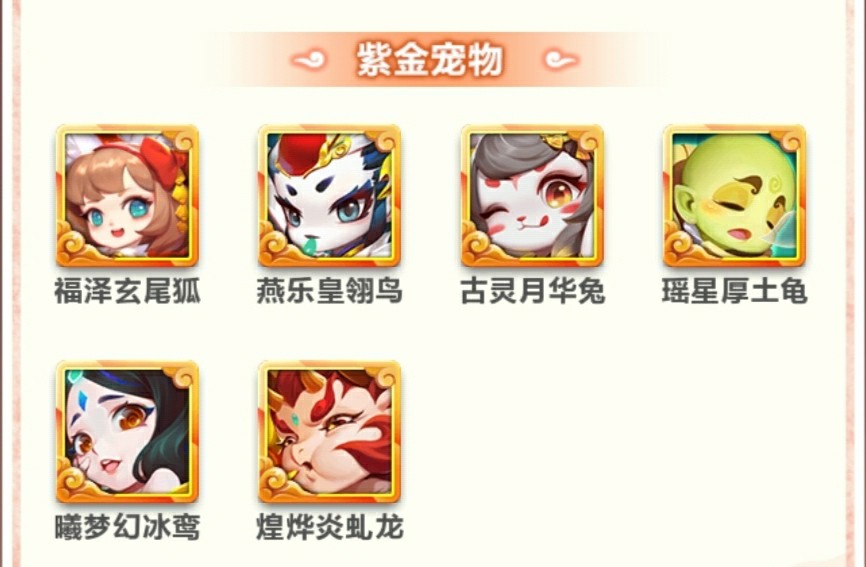★那么初步成型思路就是我们带俩幻彩宠物鹿+讙,四个紫金宠物龙+冰鸾+兔子+乌龟,刚好六个。