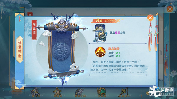 穹苍世界上除了有修仙者,还有许多魔王在作威作福,作为具备常人没有的能力的上仙们,在对抗魔王的战线上自然是首当其冲。打魔王并不是没有好处的哦,相反,装备的升级培养大部分都依赖BOSS掉落,“欧皇”们还可以从BOSS手里获得图片、天神碎片与法宝外观等,令人非常羡慕,上仙们完成修复魔王图的任务之后就可以挑战魔王了。