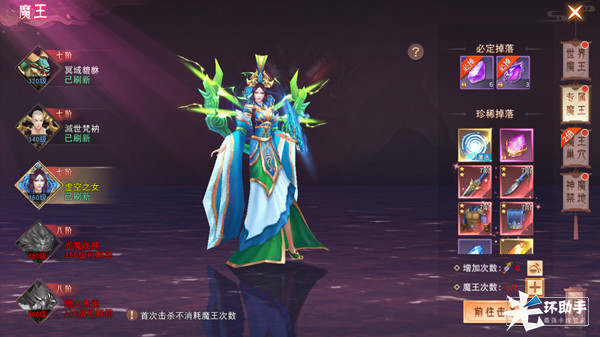 魔王虽然很多,但是上仙们应该选择与自己等级差不多的魔王挑战,甚至是比自身等级稍高一些也可以,但是如果看见魔王的名字是红色的,那么建议最好不单独前去挑战了。