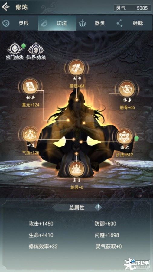 作为《灵界仙都》中最常见且最直接的实力提升方式,就是学习和修炼功法了。功法总共六大类,分别为:体术(提升筋骨)、秘典(提升真元)、遁术(提升步法)、心法(提升气血)、天书(提升修炼效率)、真言(提升灵气获取)。种类上功法分为仙界功法、宗门功法和残页,通过灵气进行升级提升属性,最高升到10级。与灵根相似,如果没有将聚灵阵提升到一定等级,也将无法保存足量的灵气来升级功法。