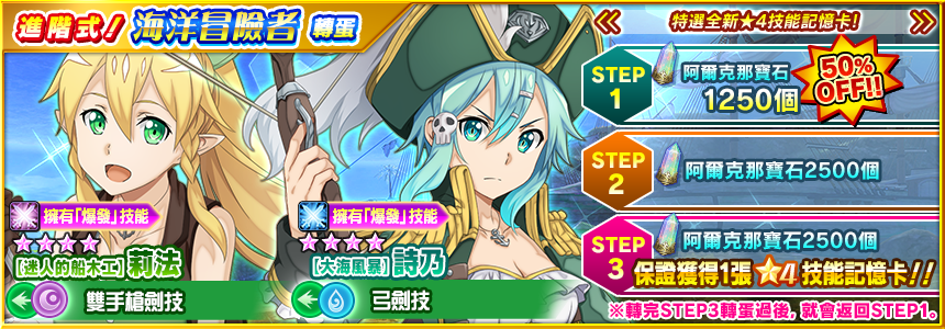特选莉法和诗乃的全新★4技能记忆卡!海洋冒险者转蛋登场!