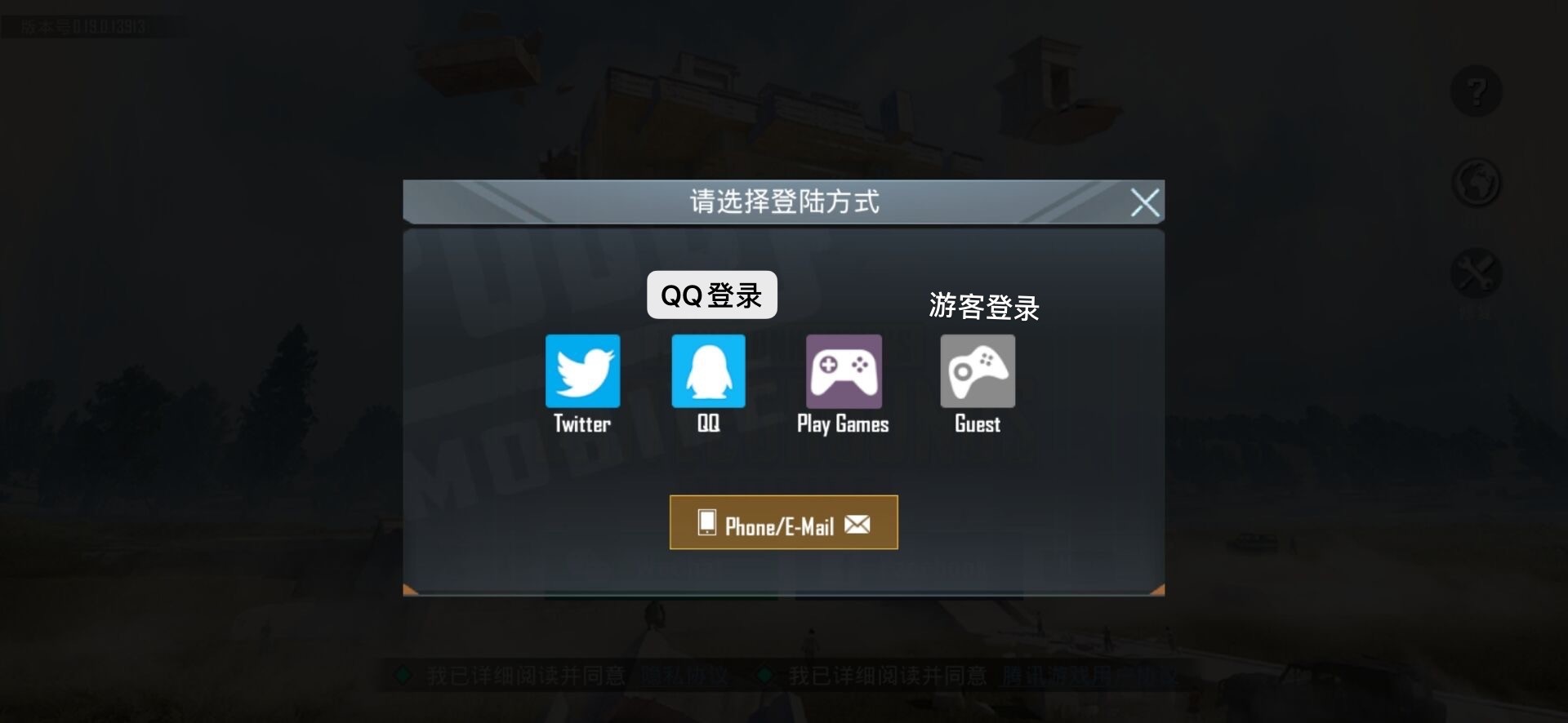 PUBG可以选择微信和QQ登录,不用担心账号问题