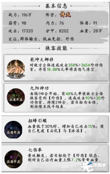 这些技能还真是根据张无忌的武功和特点来的啊,招蜂引蝶这点刘奶奶就觉得非常正确;这些奠定了张无忌群体输出/低血免控/外伤的定位,大家使用的时候也有机会再现当年光明顶以一敌六大门派的群体大招。